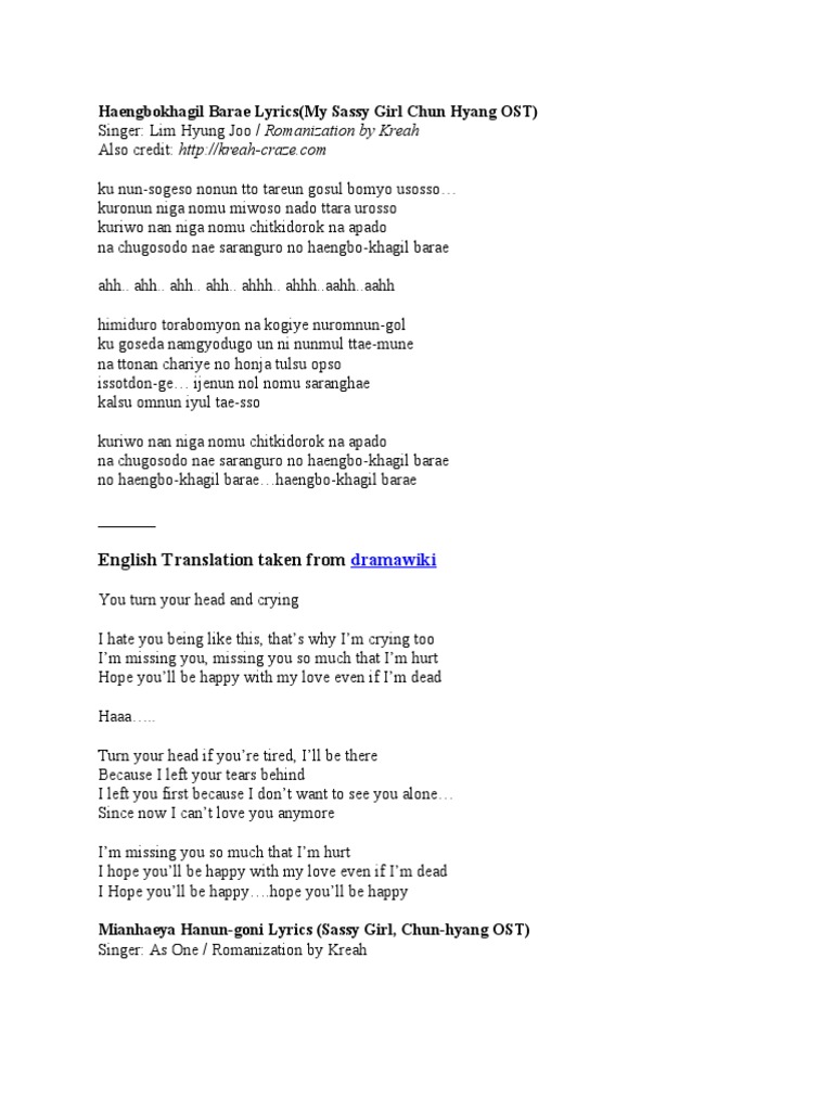 Download ost sassy girl chun hyang haengbokhagil barae