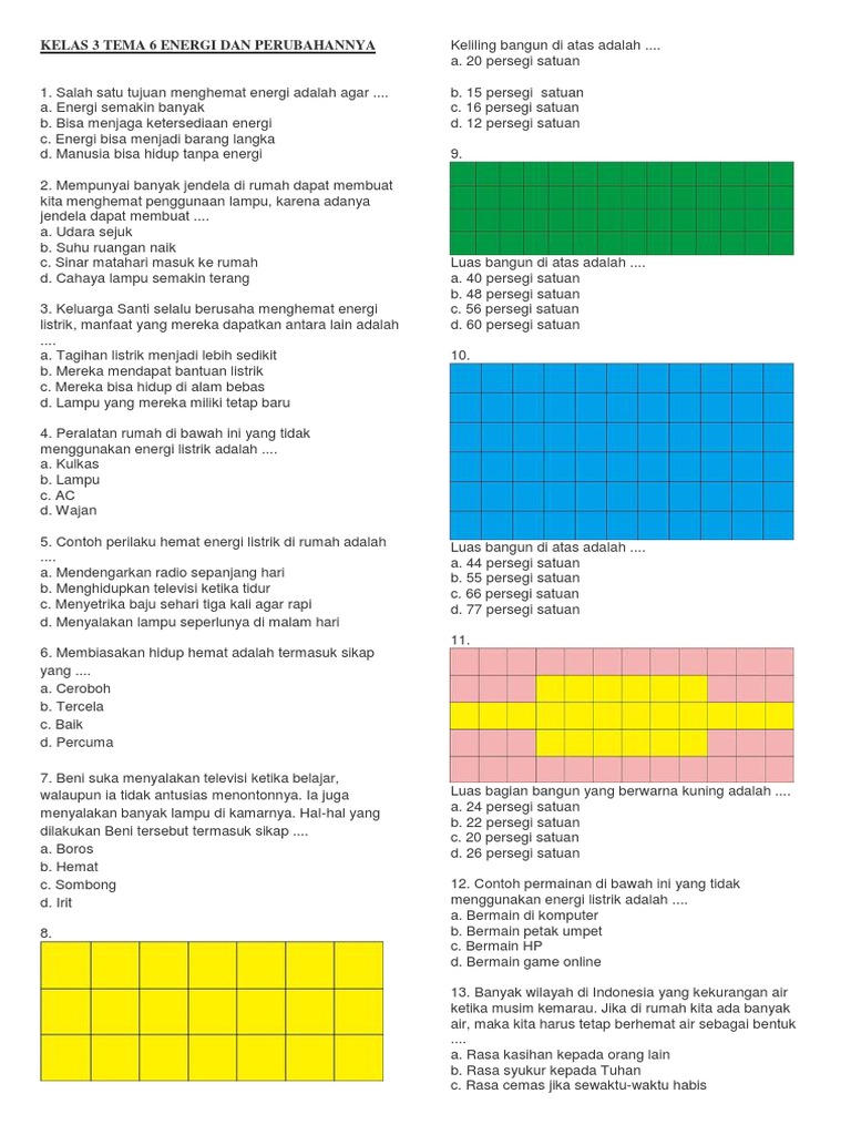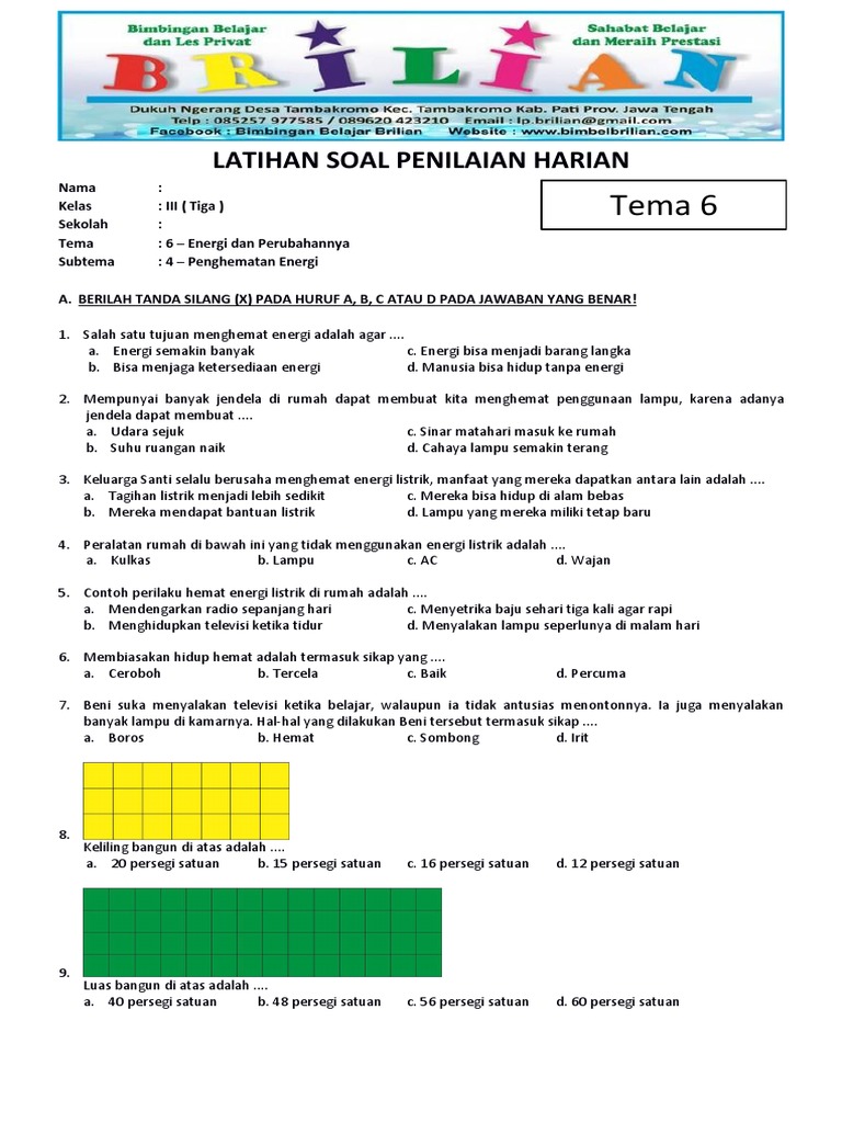 Soal Tematik Kelas 3 SD Tema 6 Subtema 4 Penghematan Energi dan …