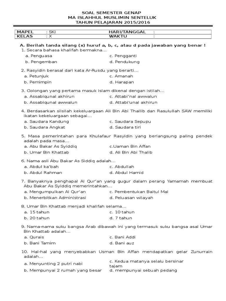 Soal Semester SKI