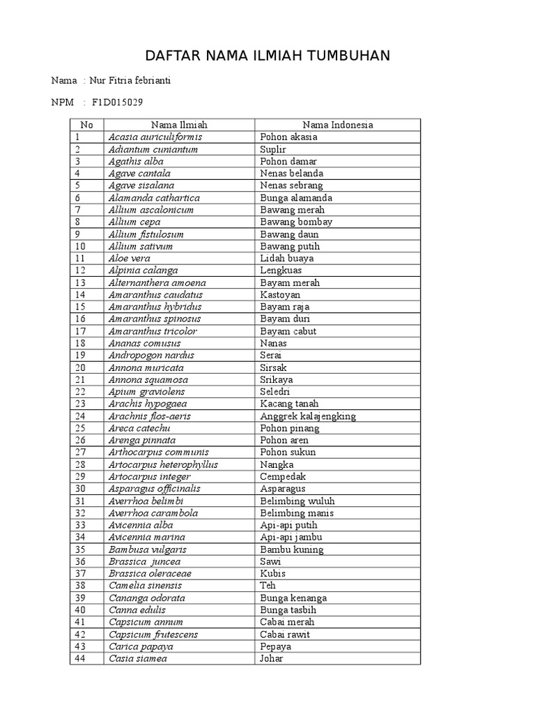 Daftar Lengkap Nama Latin Ilmiah Tumbuhan Dafat Sobat Copy Dan Baca