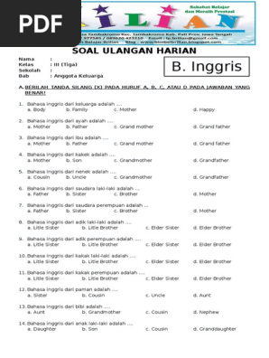 Soal Bahasa Inggris Menerjemahkan Soal Nama-Nama Anggota Keluarga …