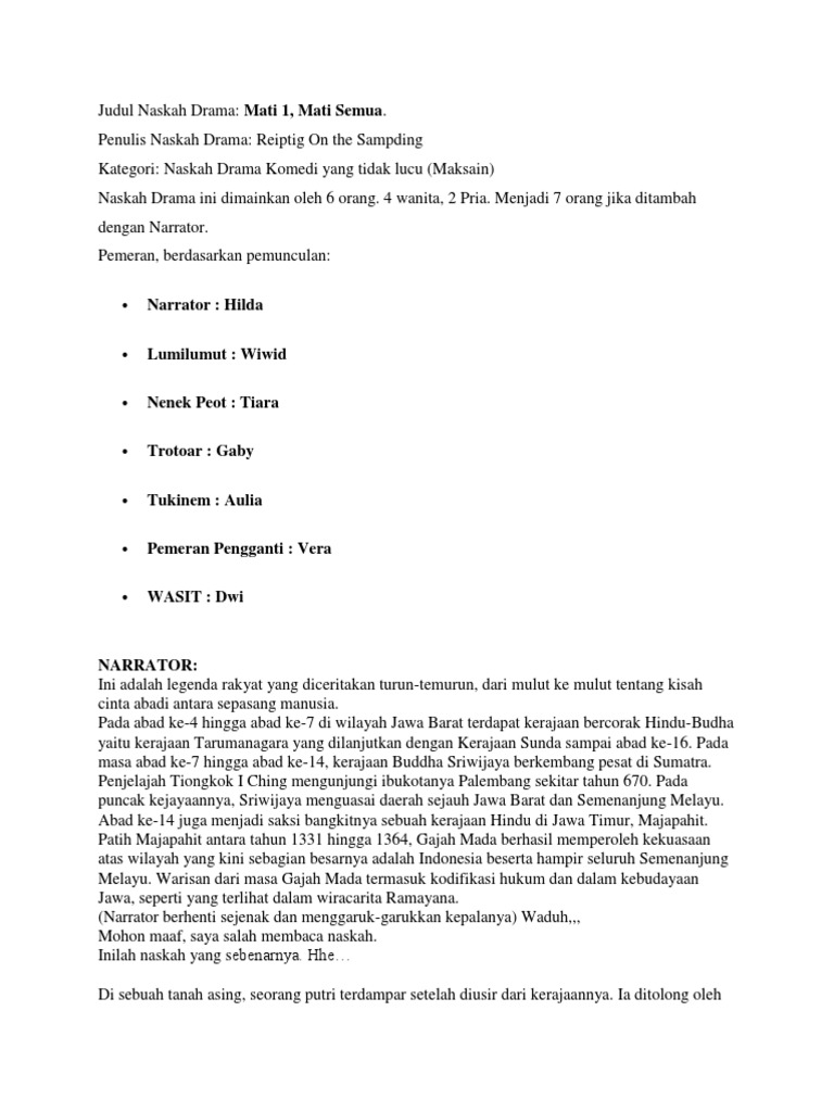 Naskah drama bahasa indonesia minimal 15 menit untuk 6 orang …