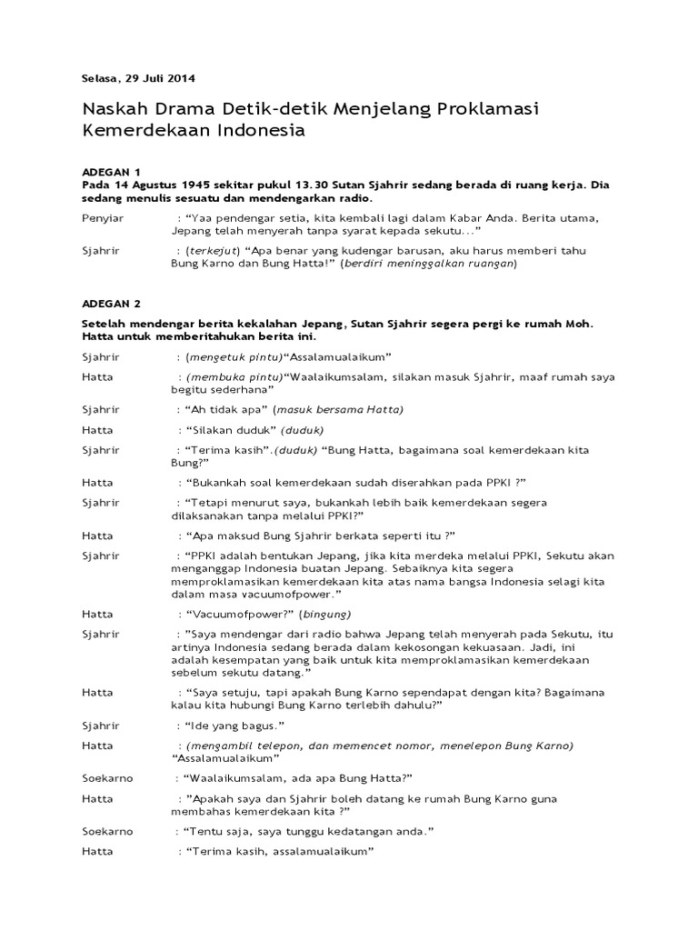 DOC) Naskah Drama Proklamasi Kemerdekaan Tugas IPS | Frisgian …