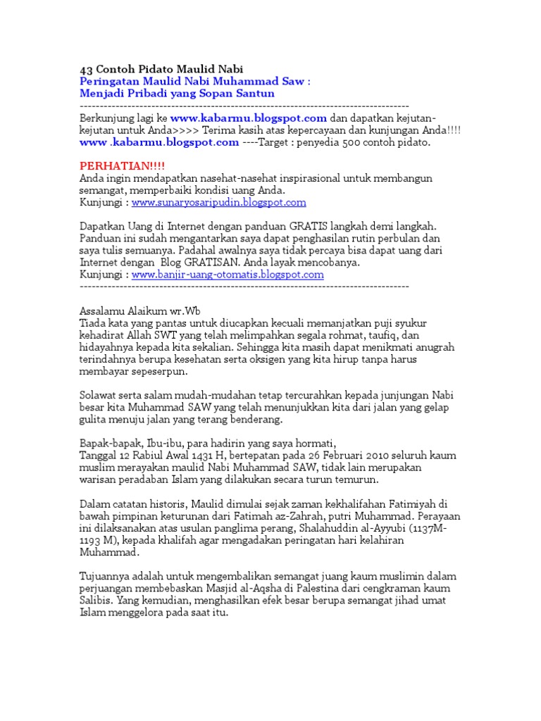 Contoh Pidato Maulid Nabi | Contoh Soal Dan Materi Pelajaran 3