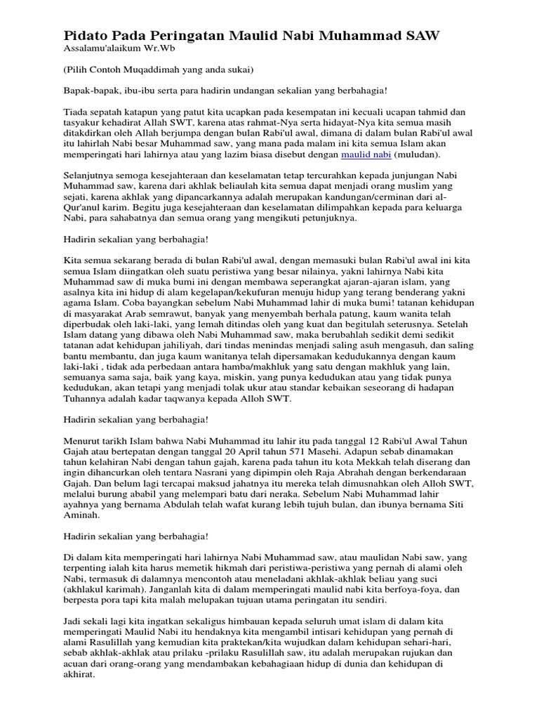 DOC) PIDATO SINGKAT PERINGATAN MAULID NABI MUHAMMAD SAW …