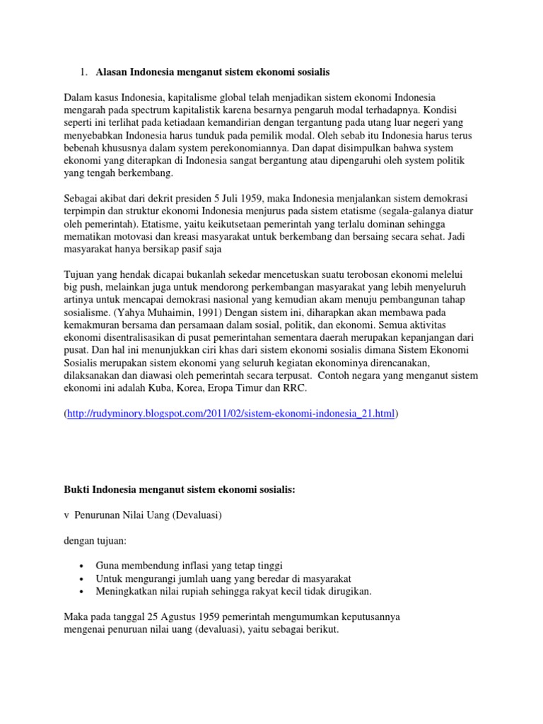 sebutkan sistem ekonomi yang dianut negara indonesia dan jelaskan alasan mengapa indonesia menganut - Brainly.co.id