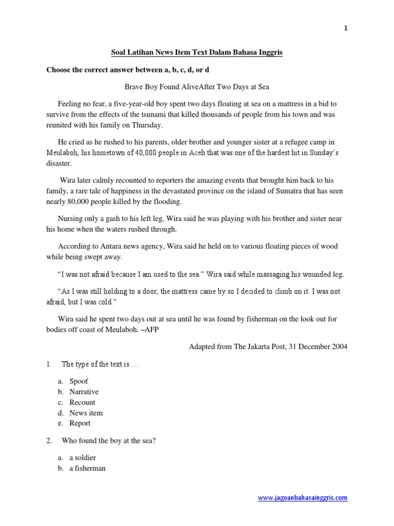 DOC) Soal Latihan News Item Text Dalam Bahasa Inggris | Novita …