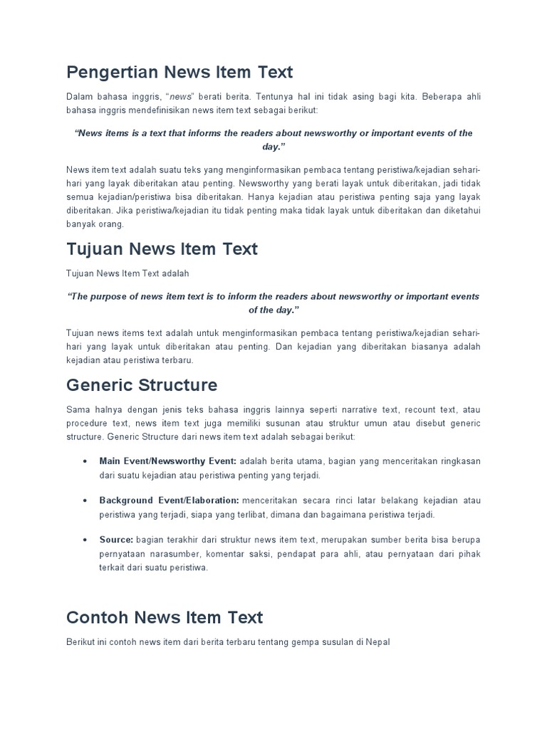 DOC) Pengertian News Item Text | Putri Damayanti - Academia.edu