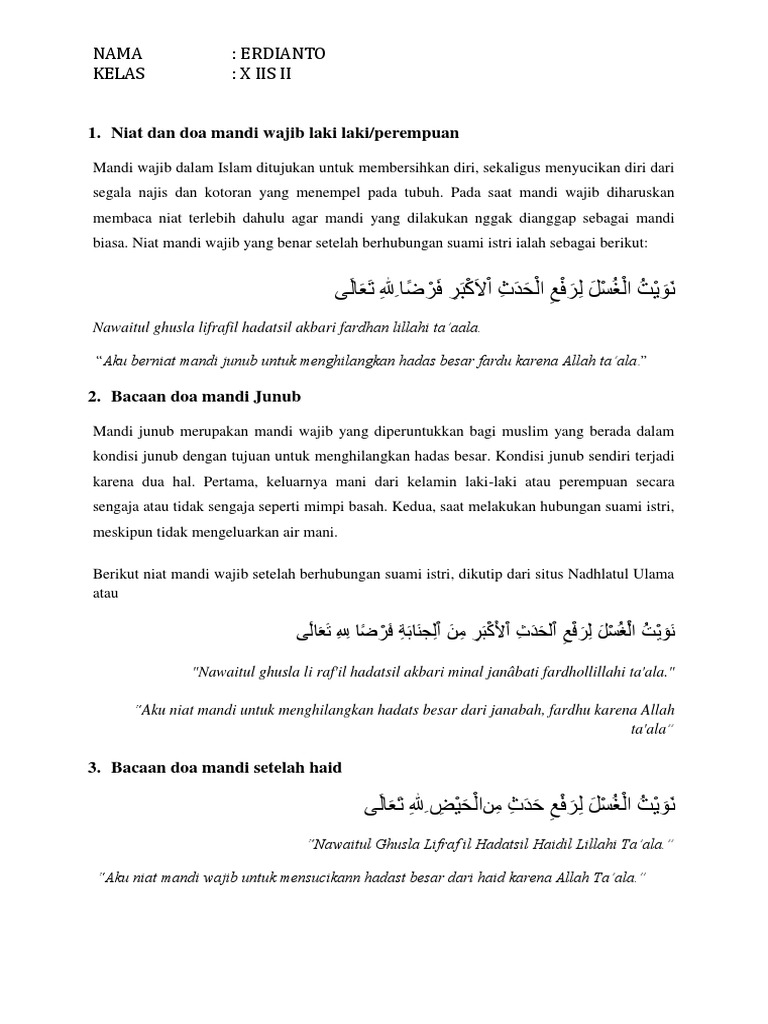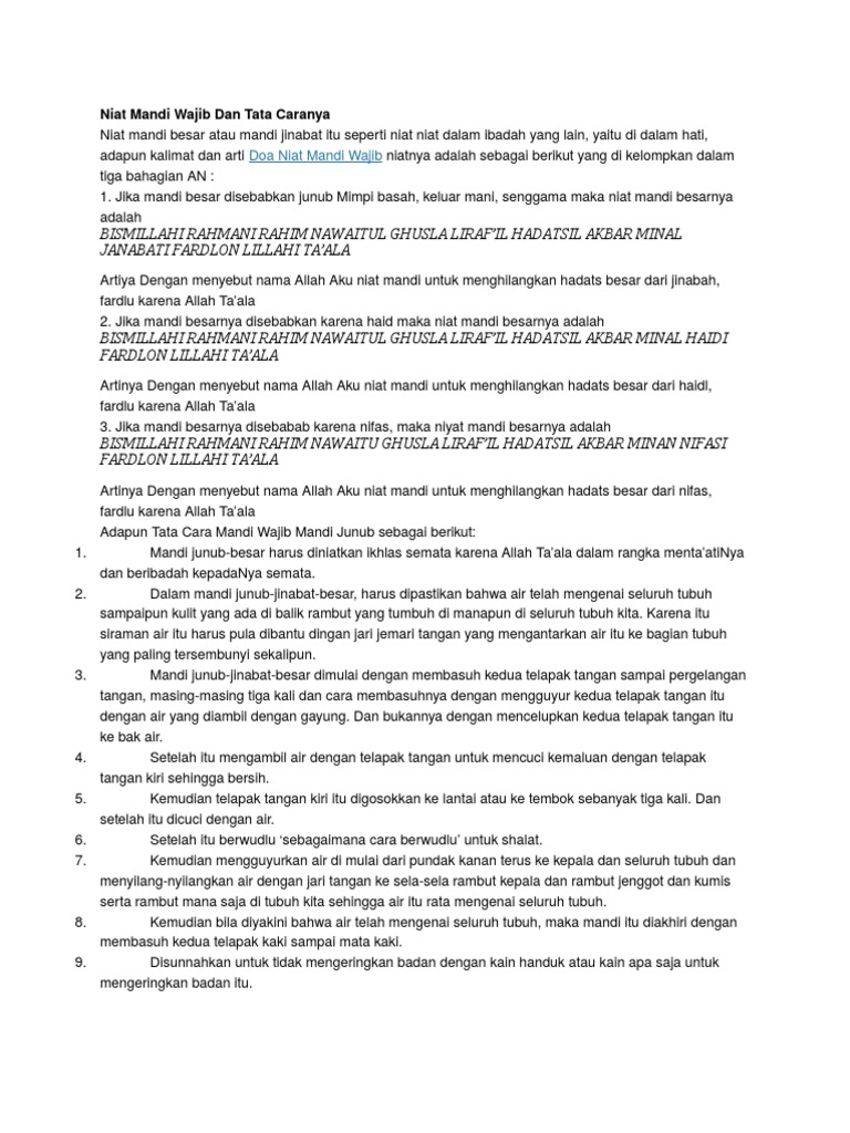 Niat Mandi Wajib Dan Tata Caranya - [DOCX Document]
