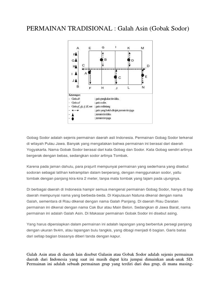 Galah asin, galasin, atau gobak sodor adalah sejenis permainan …