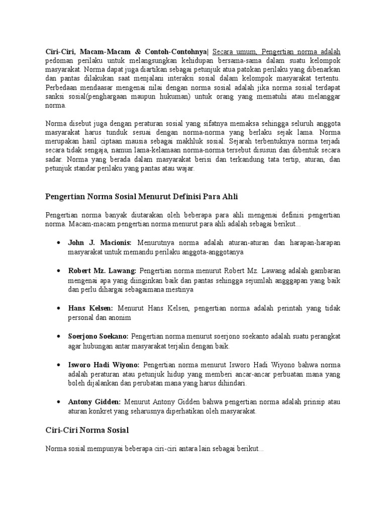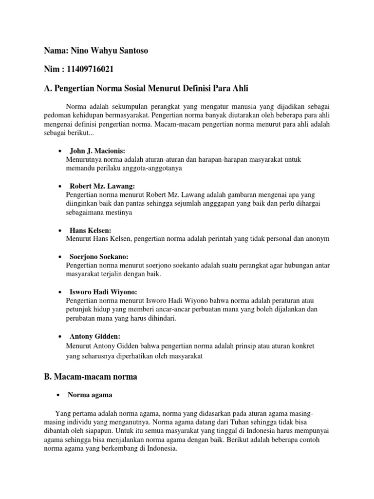 sebutkan macam macam norma sosial menurut para ahli. - Brainly.co.id