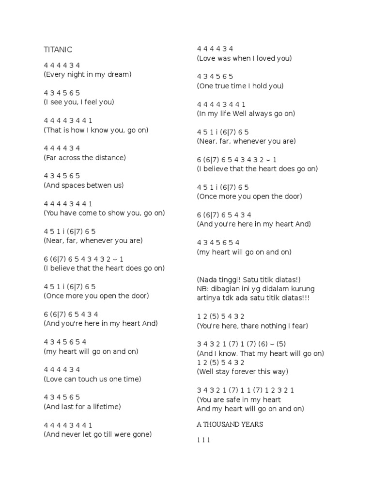 Image result for not angka lagu one thousand years | Pianika, Lagu …