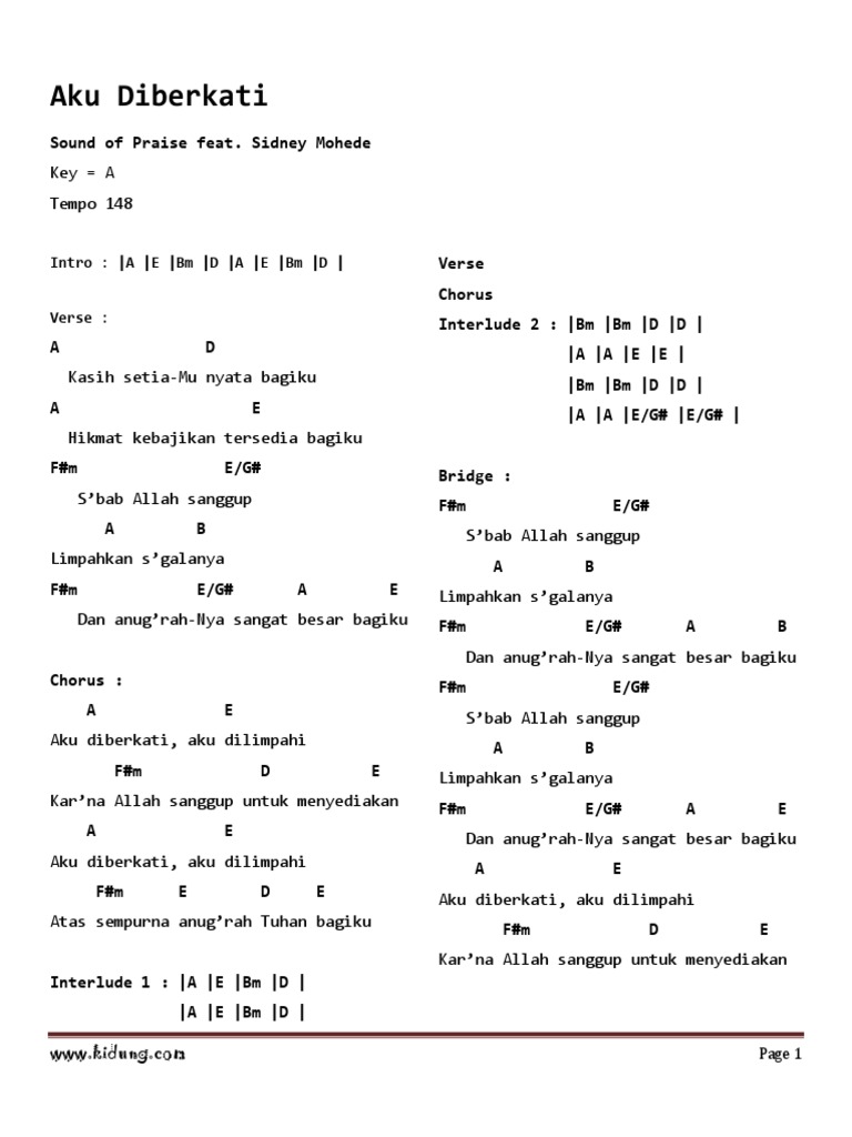 Aku Diberkati: Intro:|A|E|Bm|D|A|E|Bm|D|