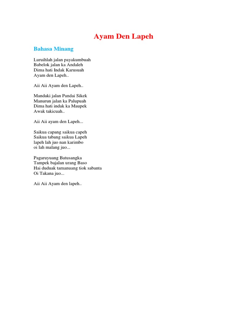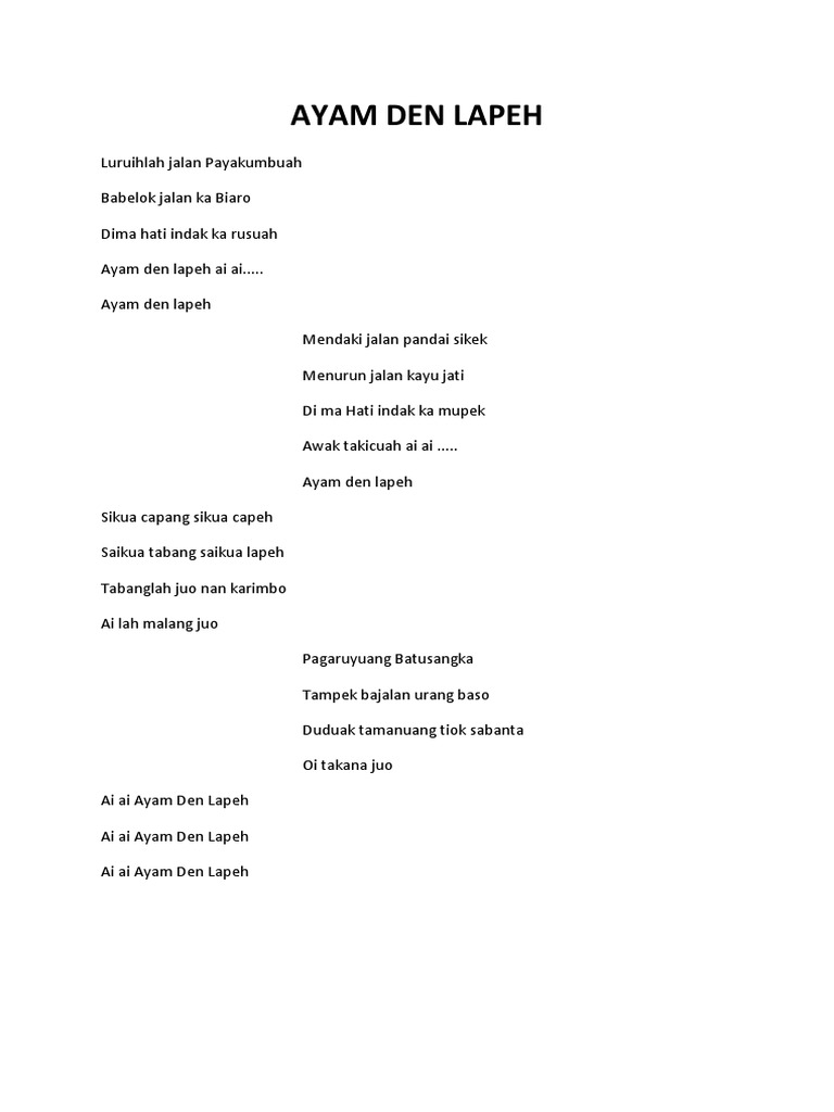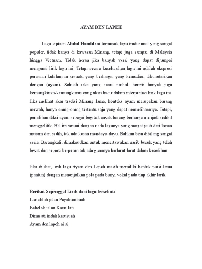 AYAM DEN LAPEH.docx - AYAM DEN LAPEH Luruihlah jalan Payakumbuah …