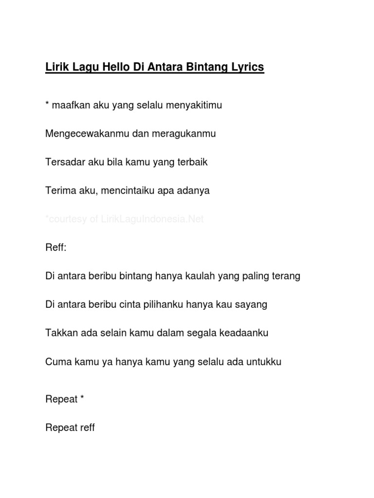 Lirik Lagu Hello Di Antara Bintang Lyrics