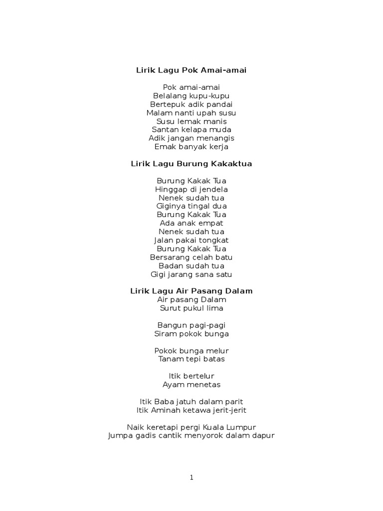 LIRIK Lagu Anak-Anak ‘Burung Kakak Tua’ - Fix Riau Pesisir