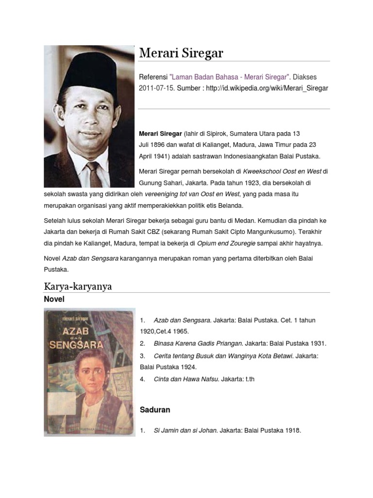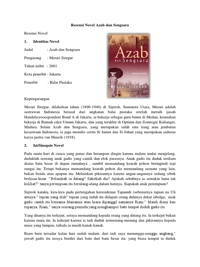 DOC) Apresiasi Novel - Azab dan Sengsara karya Merari Siregar …