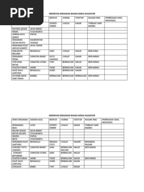 Observasi kerajinan bahan keras nusantaratolong bantu jawab …