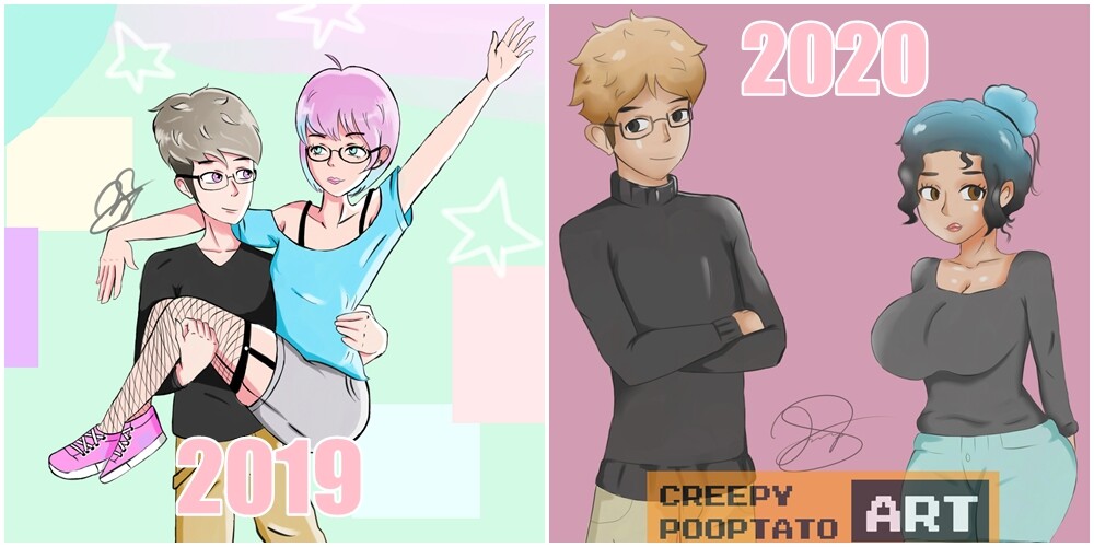 ArtStation - OC Development 2019 vs. 2020, CreepyPooptato Art