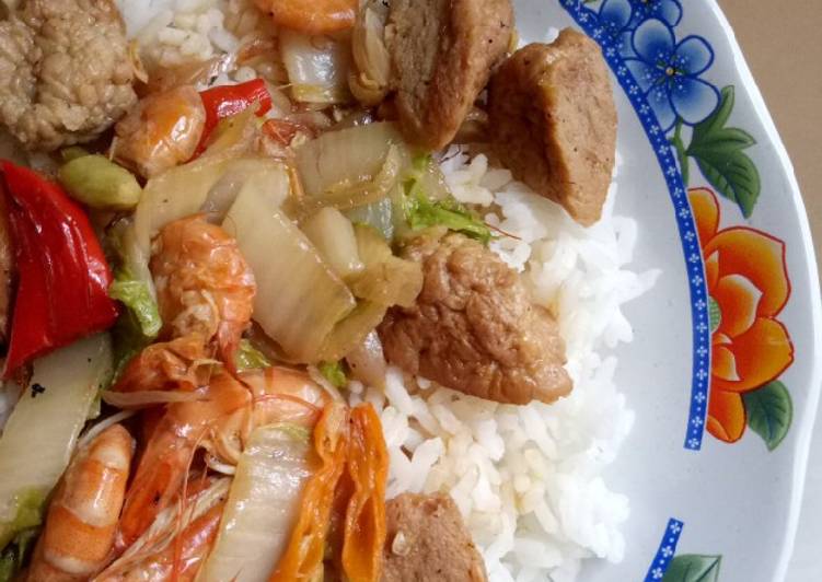 Cara Termudah Menyiapkan Oseng sawi putih toping udang & tempura | Resep MasakanKu