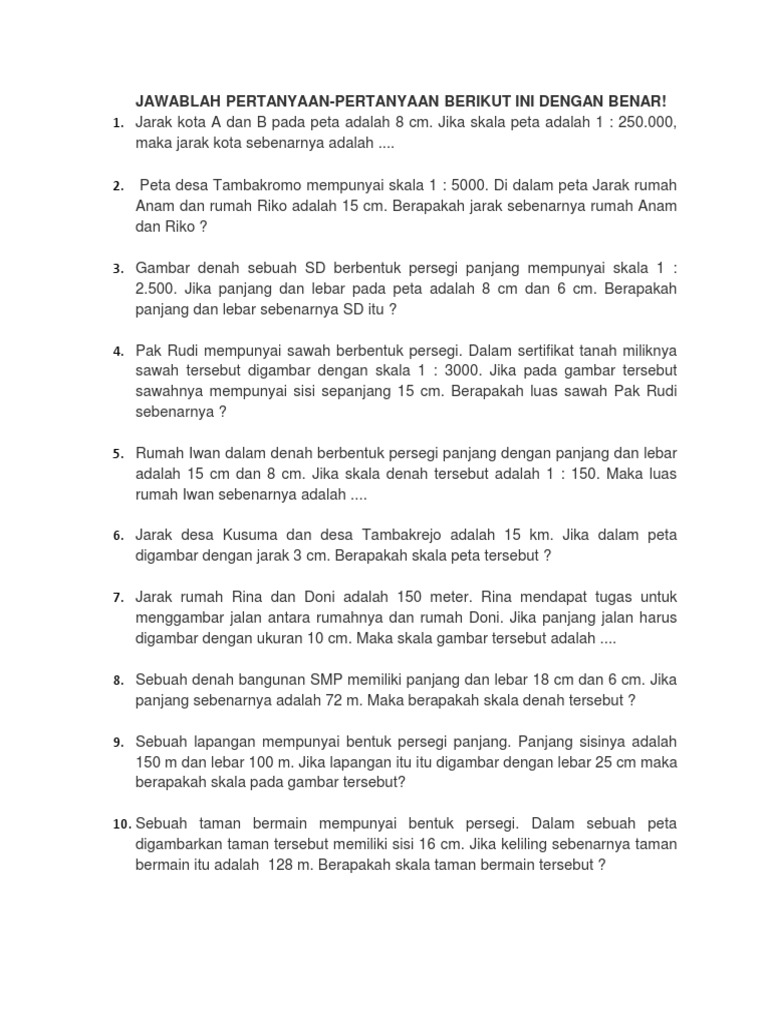 Soal Skala, Jarak Peta, Jarak Bahwasanya Plus Kunci Jawaban …