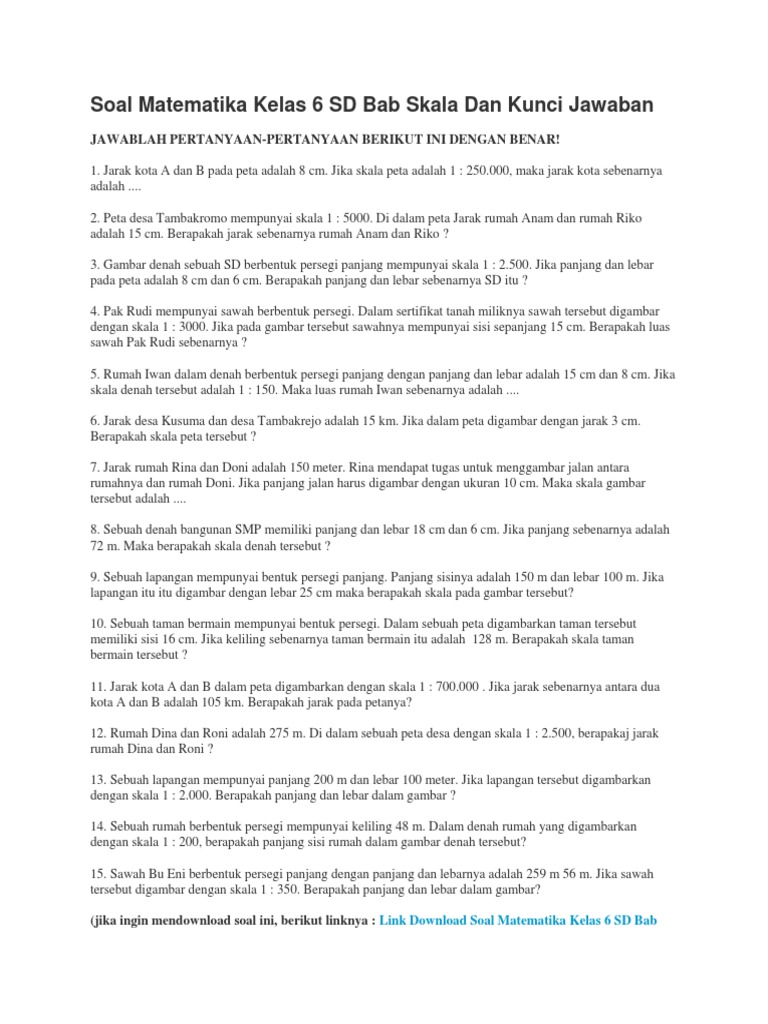 Soal Matematika Kelas 6 SD Bab Skala Dan Kunci Jawaban - Bimbel …