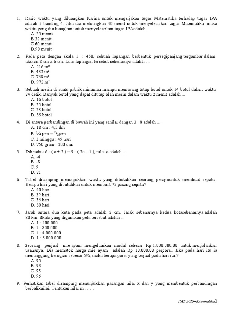 kumpulan soal dan jawban: √ Soal Dan Kunci Balasan Pat Matematika …