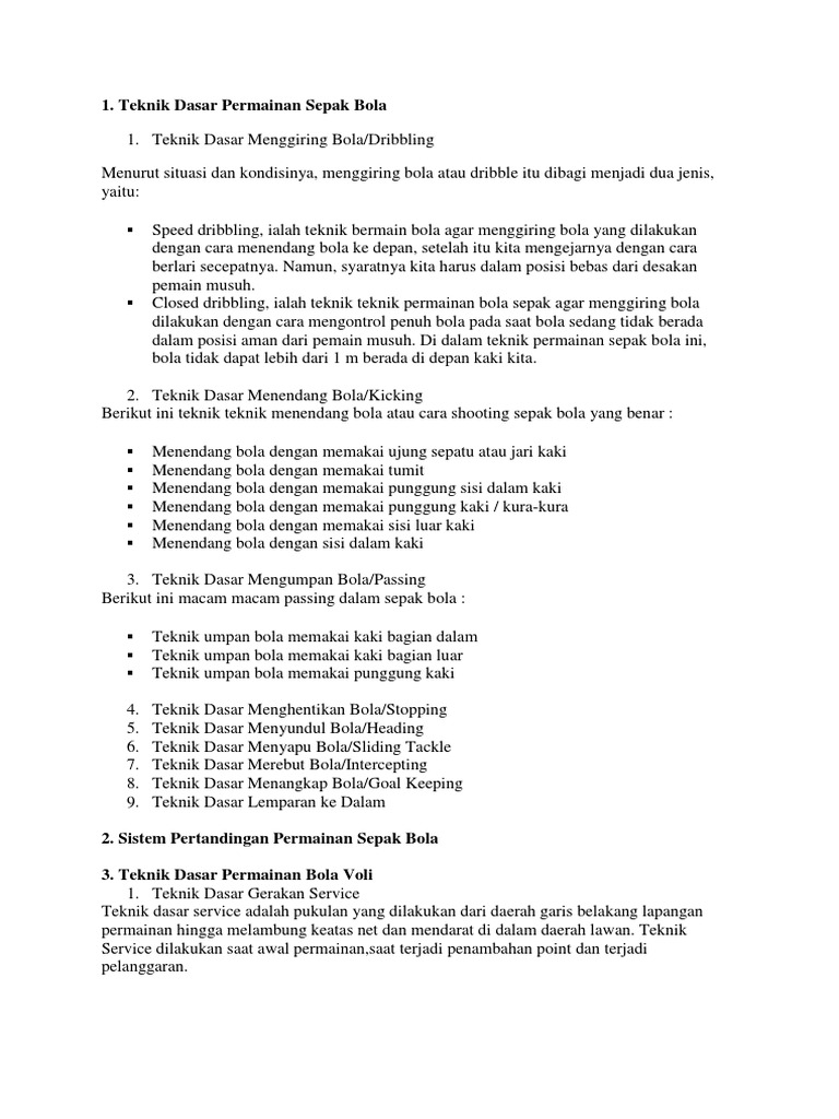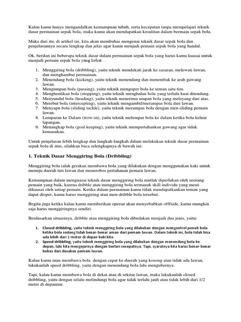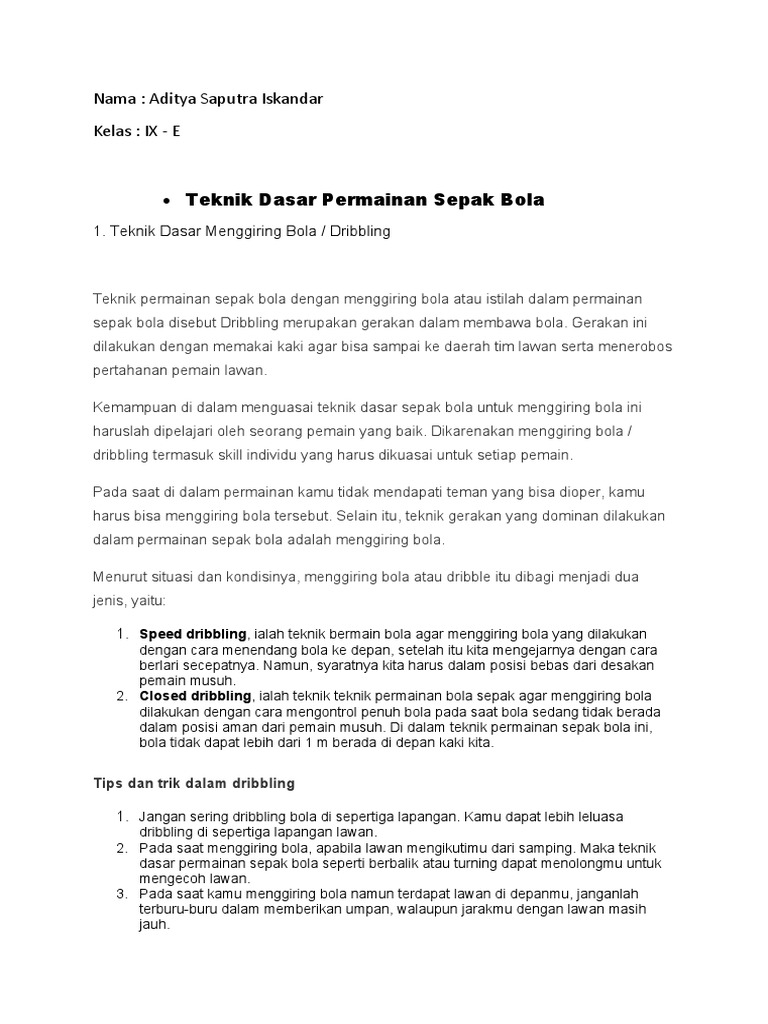 TEKNIK DASAR DALAM PERMAINAN SEPAK BOLA dan CARA MELAKUKANNYA …