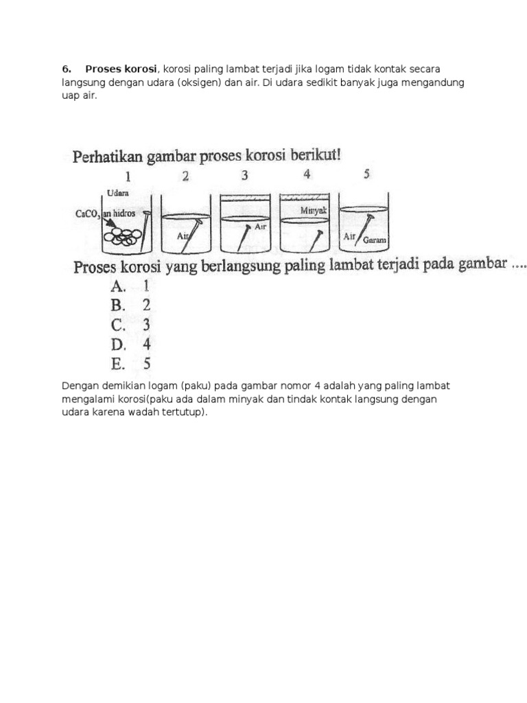 6. Proses korosi, korosi paling lambat terjadi jika logam tidak kontak …