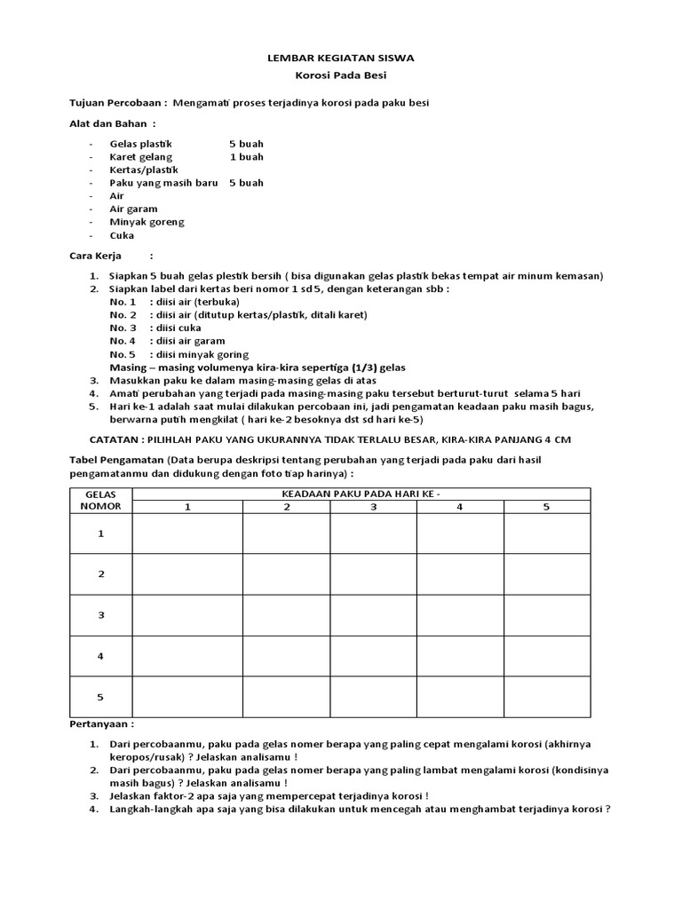 DOC) Pengamatan Korosi Pada Paku | Nur Fadilah - Academia.edu