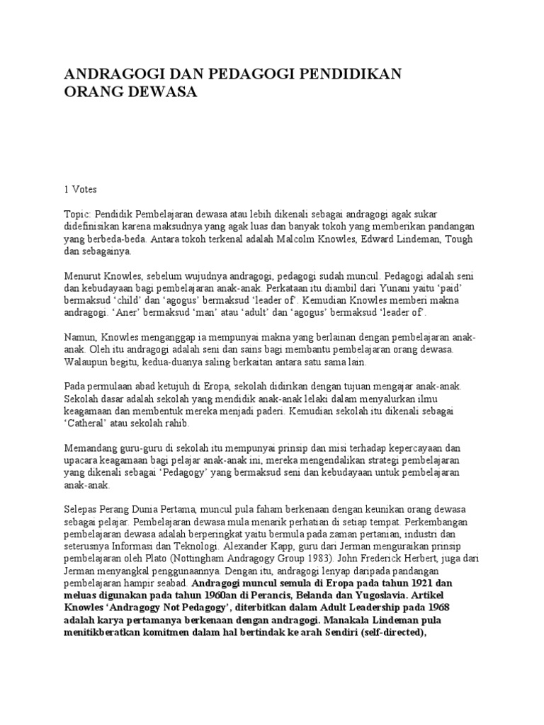 Andragogi Dan Pedagogi Pendidikan Orang