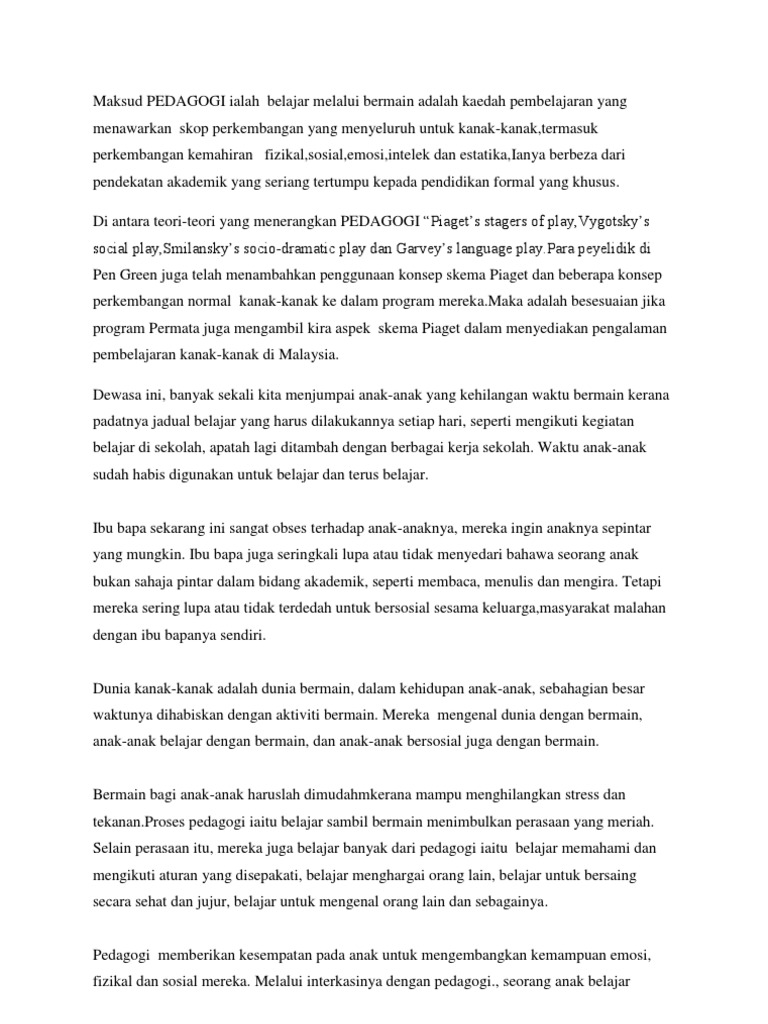 Maksud PENDAGOGI Ialah Belajar Melalui Bermain Adalah Kaedah …