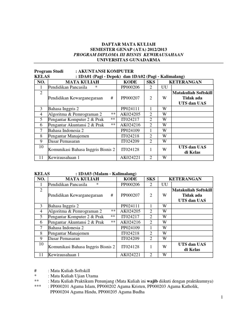 Jadwal Kuliah MKDU untuk Kelas R3 – Semester Antara – Program …