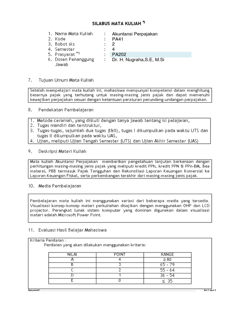 DOC) Mata Kuliah : Akuntansi Perpajakan SKS : 3 Semester : 4 Kode …