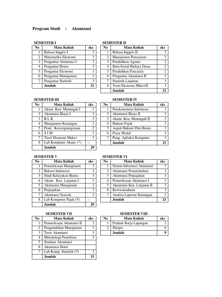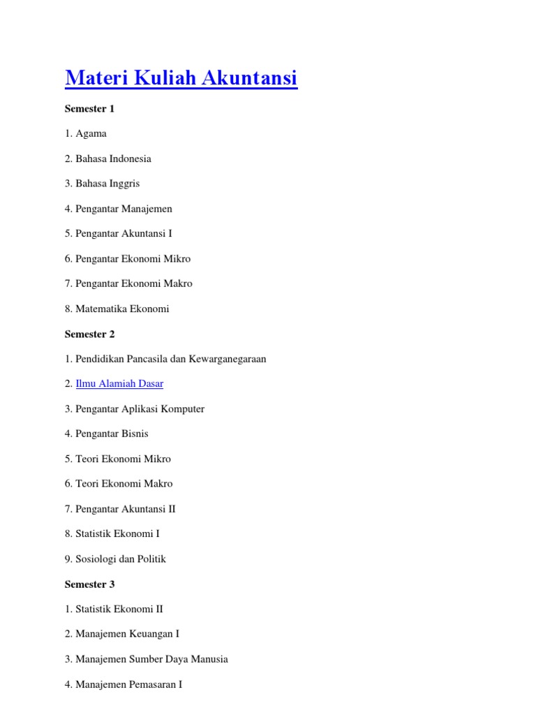 20 Mata Kuliah Jurusan Akuntansi Manajemen Semester 1, 2, 3 …