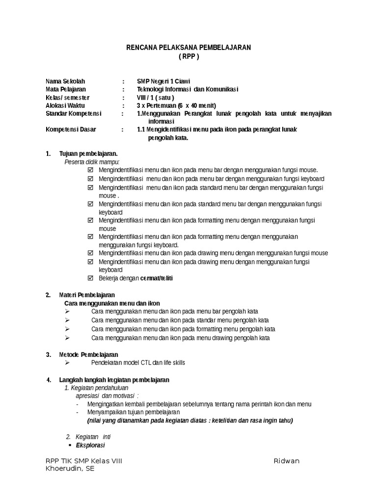 RPP TIK SMP Kelas 8 Kurikulum 2013 Revisi 2018 2019 - Katulis