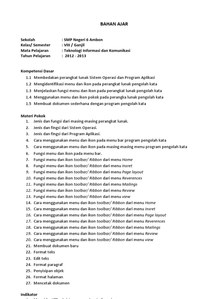 Materi Pelajaran TIK Kelas 8 Semester 1 dan 2 KTSP ~ Pembelajaran …