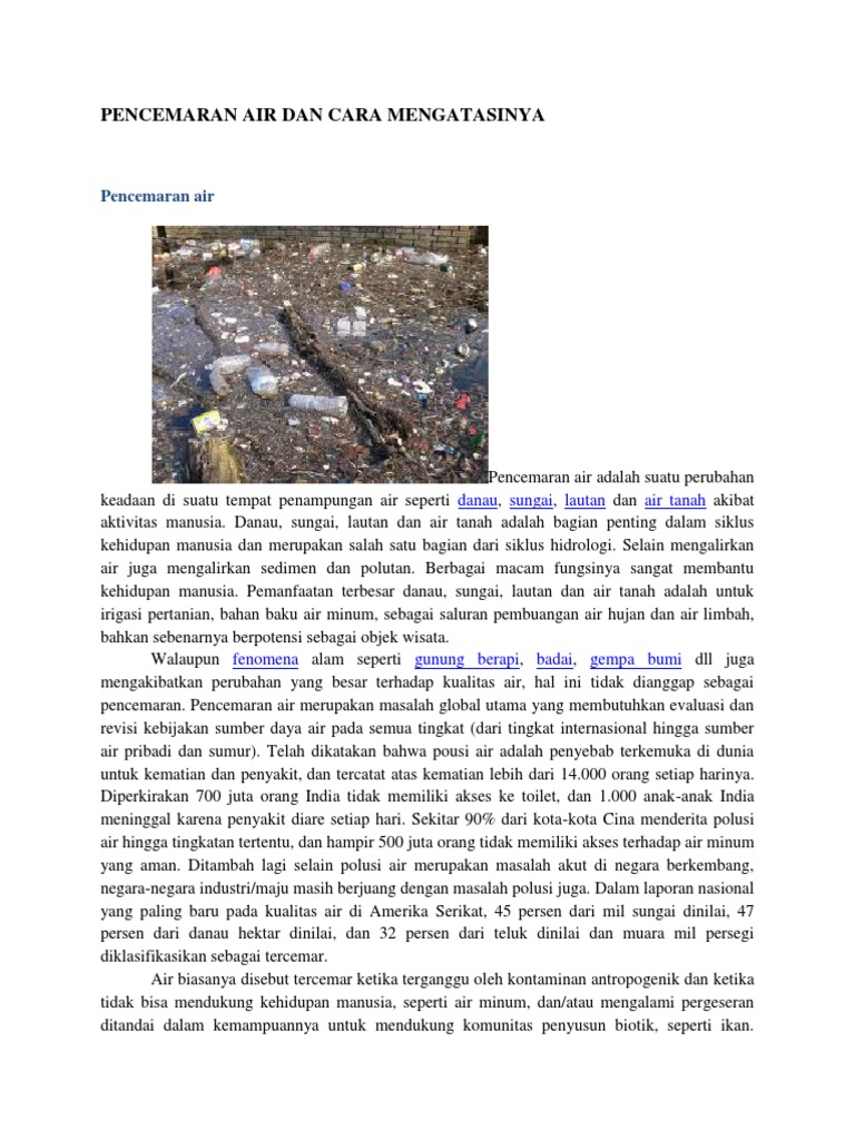 DOC) Sebab dan Akibat Pencemaran Air serta Cara Mengatasinya …
