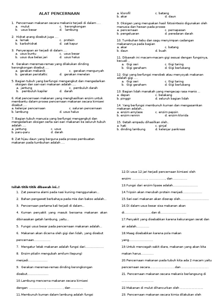 Soal Tentang Sistem Pencernaan - Guru Galeri