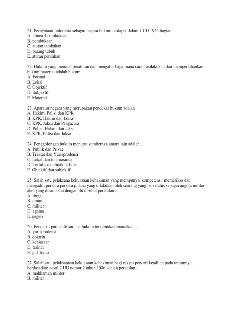 Kisi Kisi n Soal Sistem Hukum Peradilan Nasional