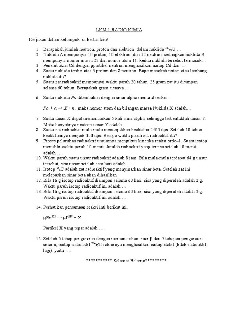DOC) SOAL SOAL KIMIA RADIOAKTIF | Yasir Farhan - Academia.edu
