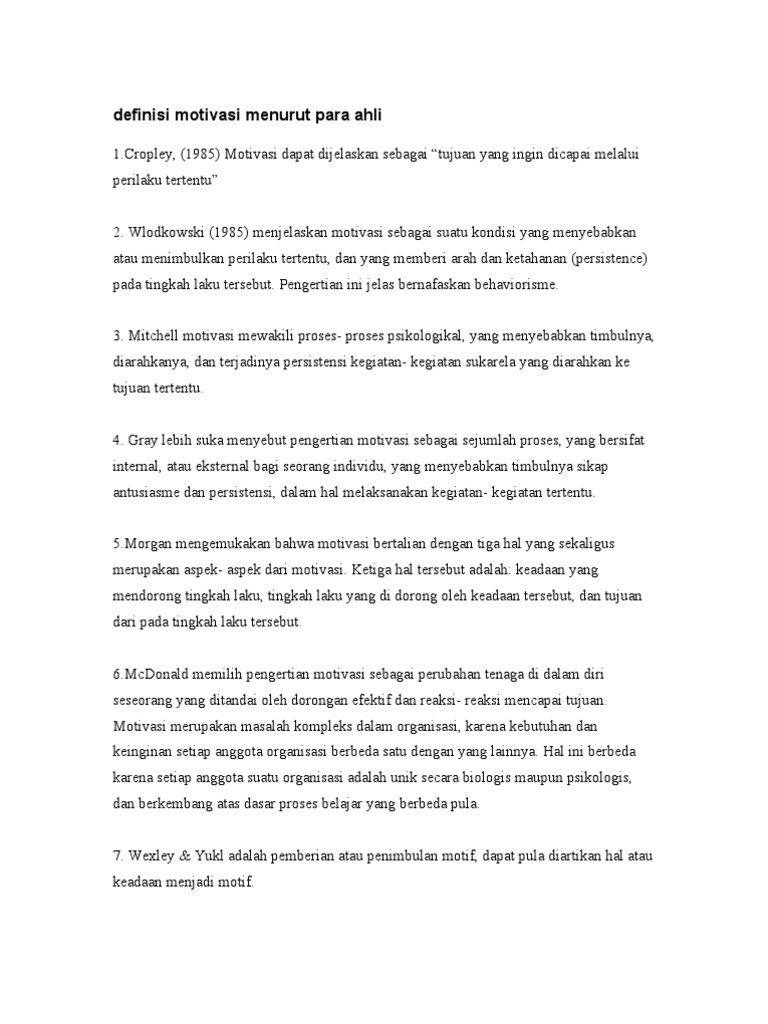 Pengertian Motivasi Menurut Para Ahli - [DOC Document]