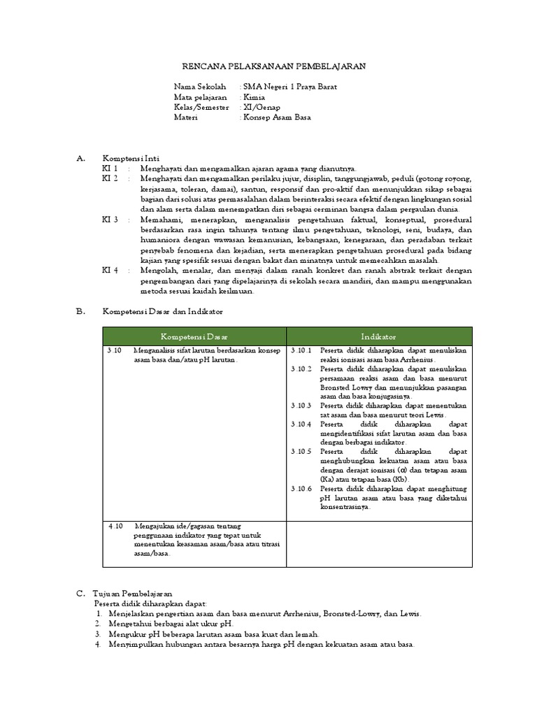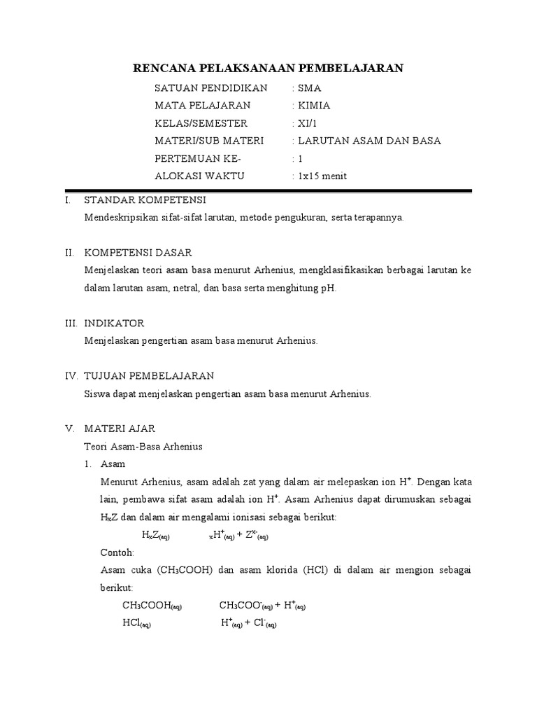 RENCANA PELAKSANAAN PEMBELAJARAN Asam Basa