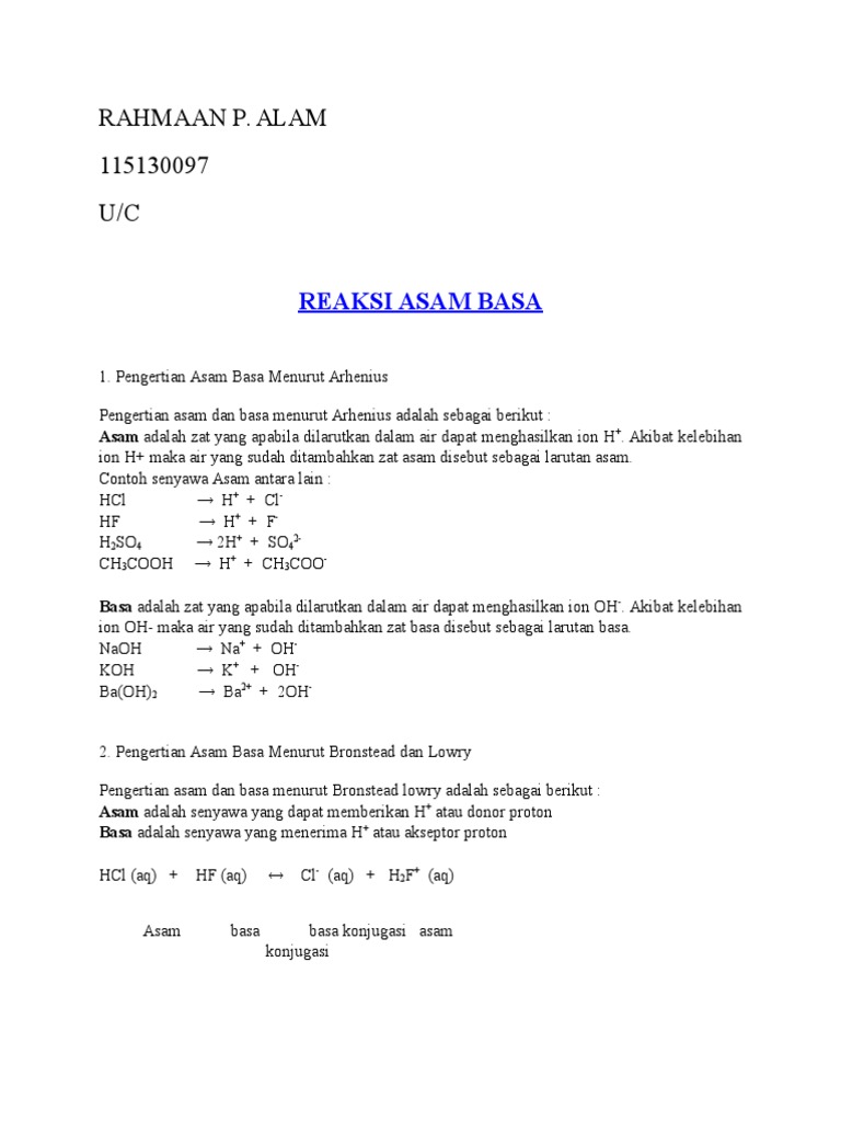apa saja contoh reaksi asam basa menurut teori arrhenius - Brainly …