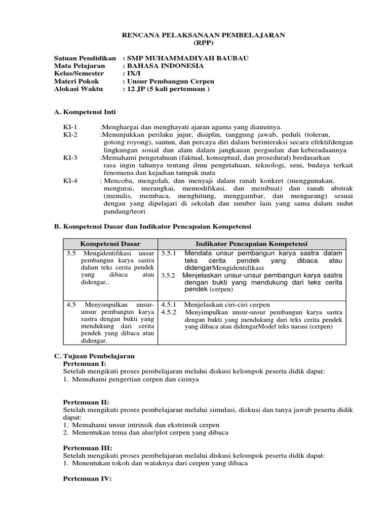 Rpp Unsur Pembangun Cerpen
