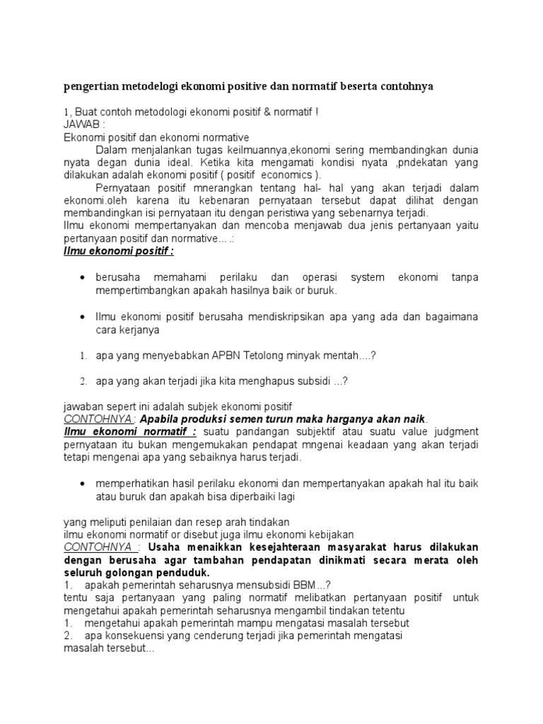 Pengertian Metodelogi Ekonomi Positive Dan Normatif Beserta …