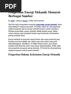 Pengertian Energi Mekanik Menurut Berbagai Sumber