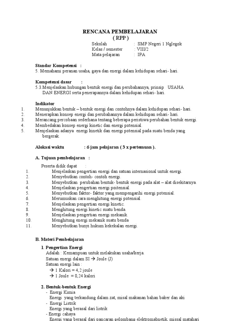 Rpp Usaha Dan Energi