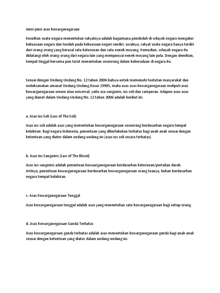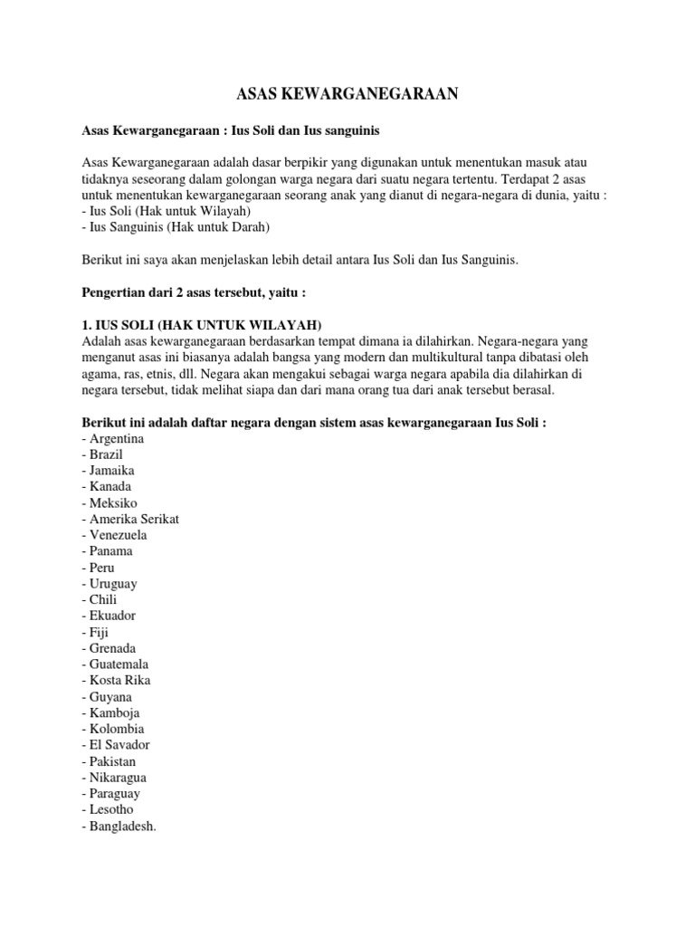 DOC) Makalah Asas & Unsur Kewarganegaraan | iwan taufiq - Academia.edu