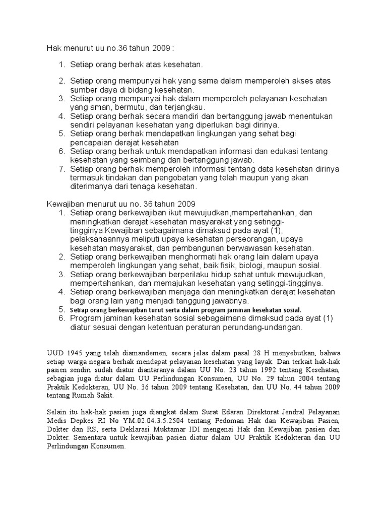 Undang-undang Kesehatan No 36 Th 2009 | Kesehatan Kedokteran